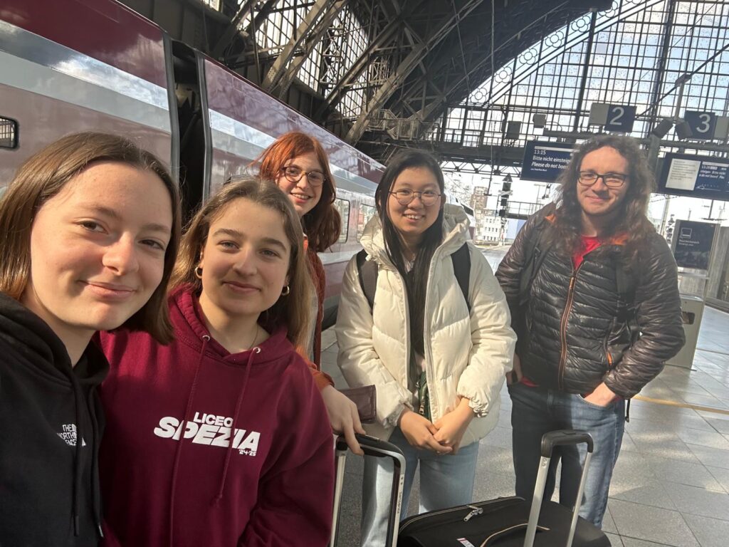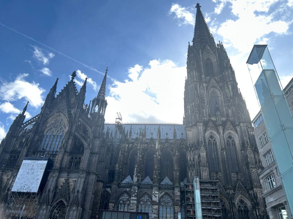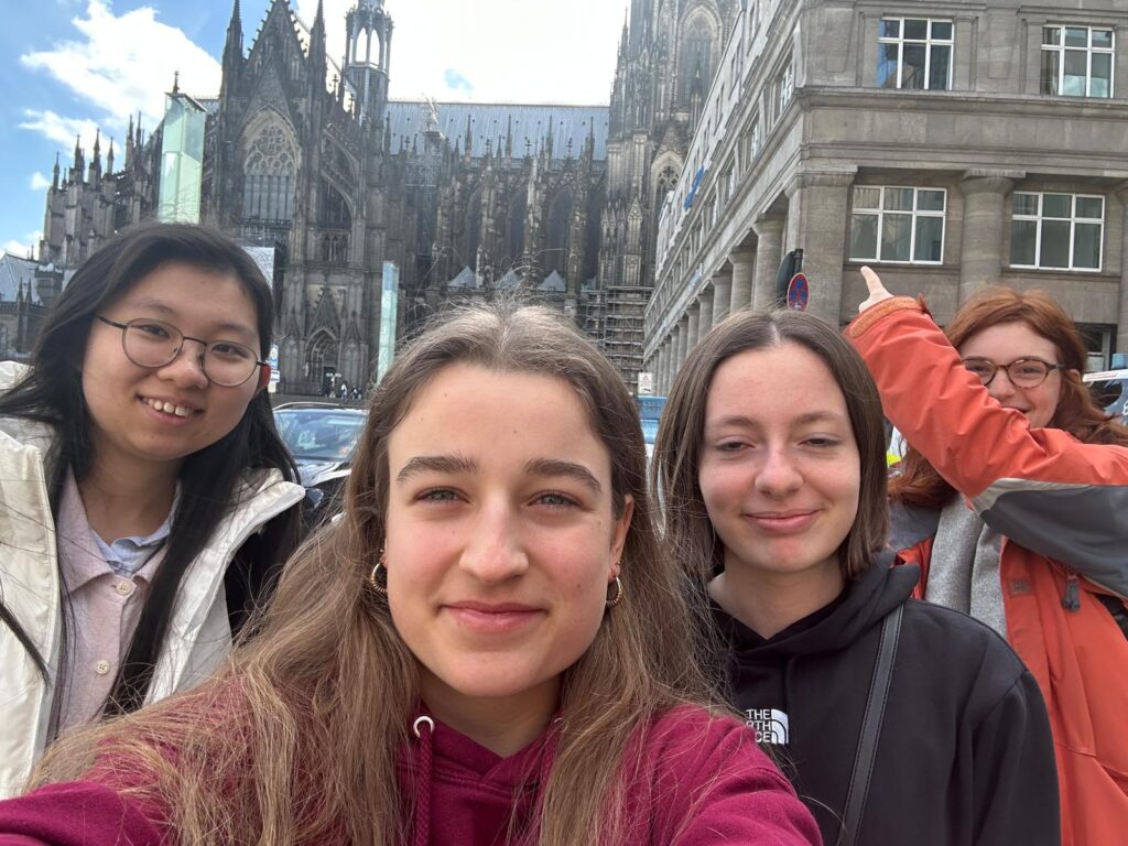 Notre odyssée devait commencer à 9h15, devant la voie 10 du hall 1 de la gare du Nord. Si la moitié de l’équipe a été très ponctuelle, il n’en est pas de même pour l’autre partie qui est arrivée à 9h17 au rendez-vous. À cause de la pression des animatheurs (dont nous tairons le nom) ces élèves se sont senties obligées de s’excuser pour le retard de seulement 2 minutes [à ce moment du récit un animatheur dont le nom est tu se doit de préciser que cette partie a été rédigée par des membres de l’équipe, et que l’animatheur se détache de ces propos]. Après quelques ravitaillements, nous montons dans notre train de 9h46 sans encombre. Après cette première partie du voyage, où nous nous sommes occupées comme nous pouvions lors de ce trajet de 4h, où (certaines font un peu de mathématiques, pendant que d’autres en profitent pour améliorer leur skills en jeu vidéo, ou collecter un maximum de potins), nous arrivons finalement à Cologne.